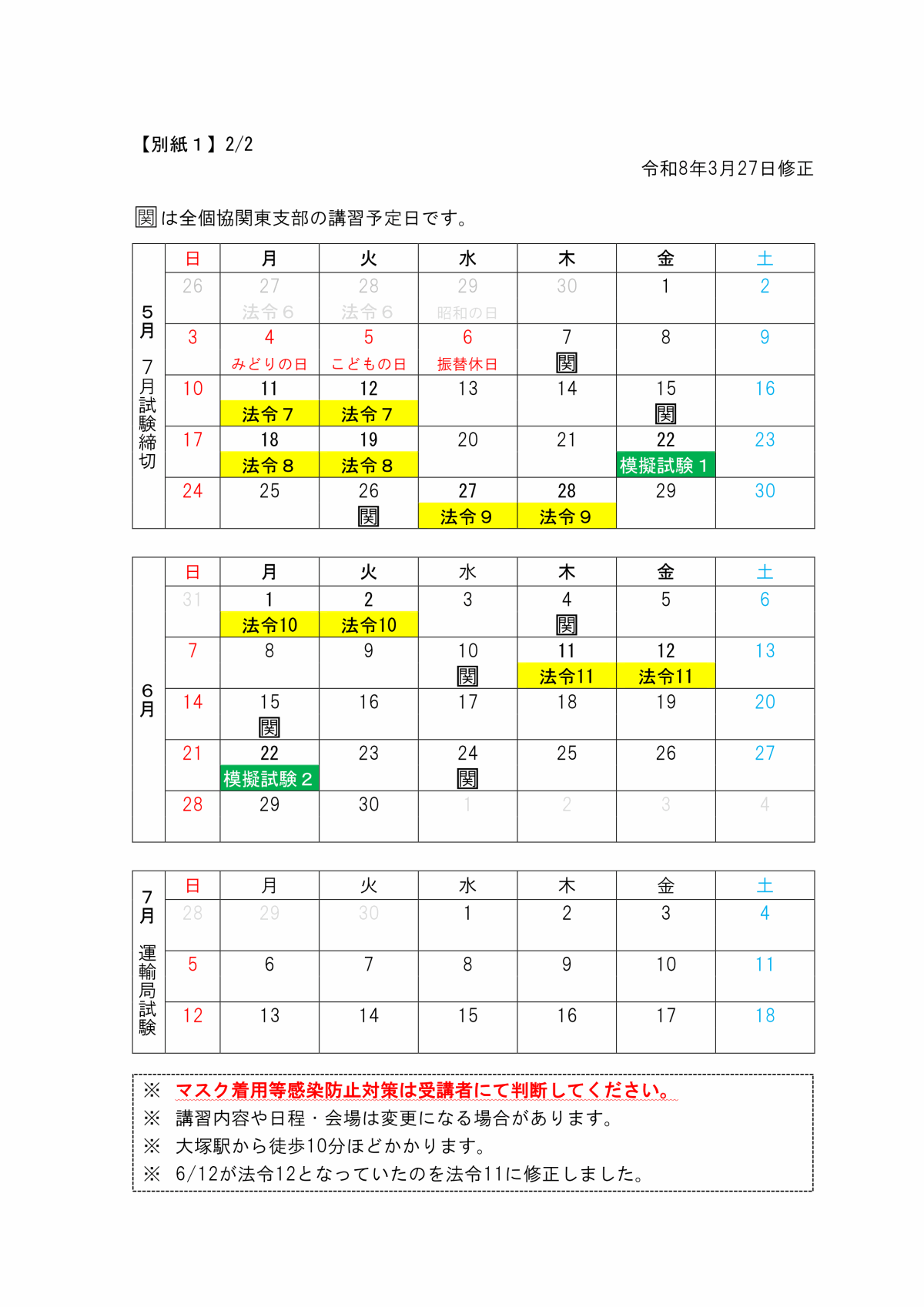 令和8年7月試験受験者向け模擬試験(予定)